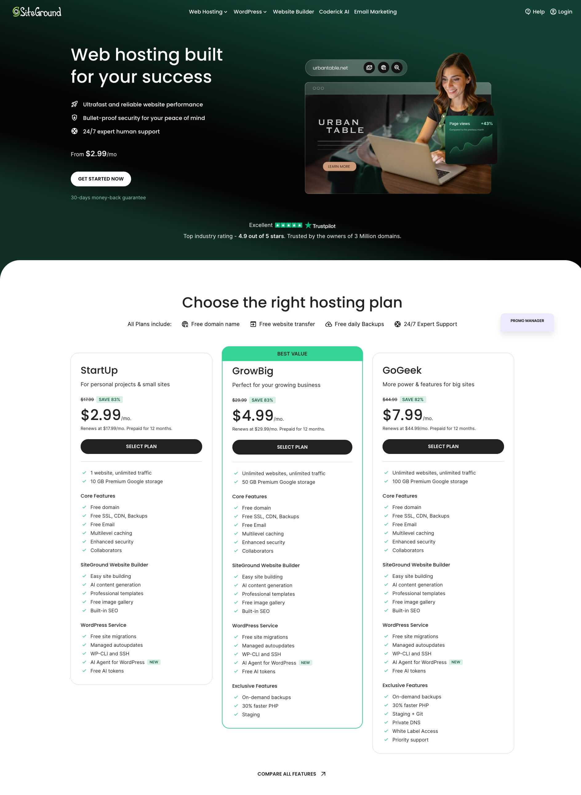 Our three hosting plans are designed to cater to every need, from beginners starting their first website to companies running large e-commerce stores, and agencies and professionals running multiple websites for clients. You can sign up for any of them at an amazing discount, we will guide you toward the plan that best suits their needs: